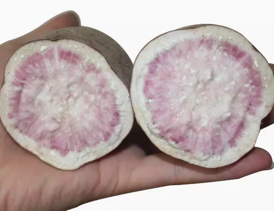 一点红番薯是广州南沙万顷沙的一种名特产,这种番薯因为它的颜值和内涵圈粉无数,人称最美味的“冰淇淋番薯”,因为它有着冰淇淋口感香、糯、甜、滑,颜色呈紫红色,偏白的肉色中间还带有紫红色的芯,蒸熟后吃着粉糯不干喉,还有浓浓的番薯香味。更有人夸它有着“莲蓉般的口感,板栗似的香味”。
