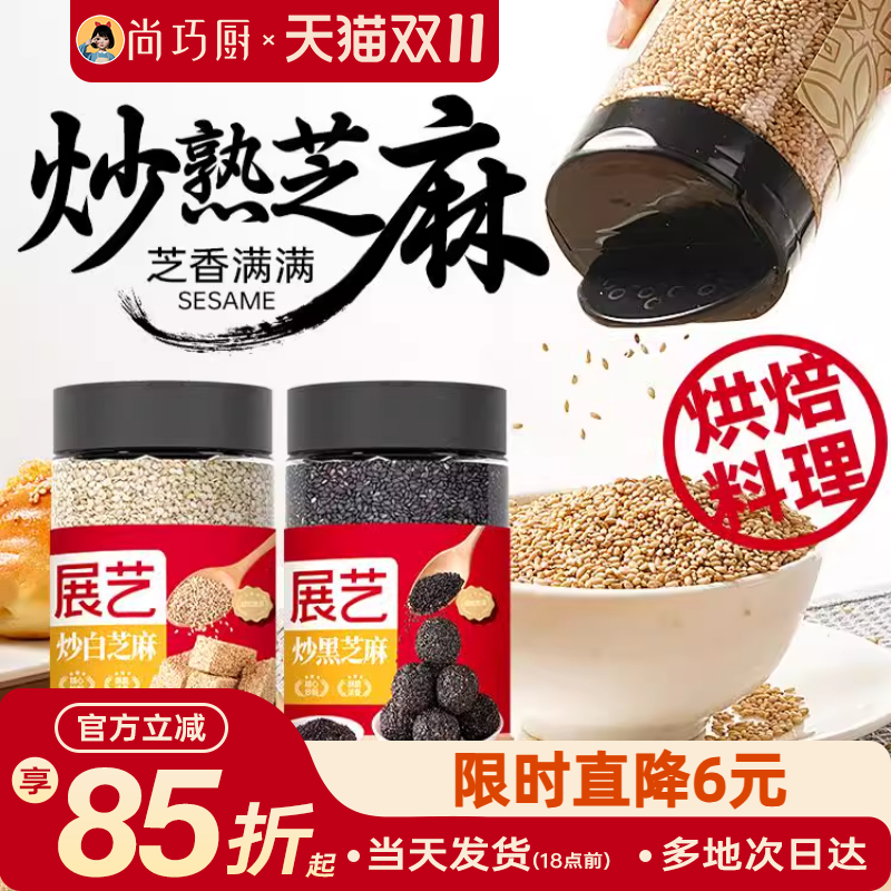 尚巧厨展艺熟白芝麻粒即食罐装调料家用商用炒黑芝麻烧烤烘焙组合