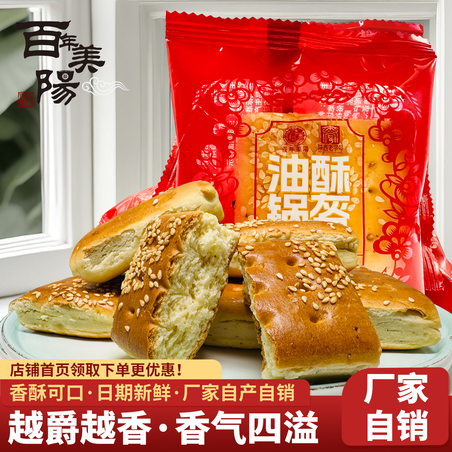 百年美阳岐山方形油酥锅盔独立包装陕西小锅盔宝鸡糕点手工五香饼