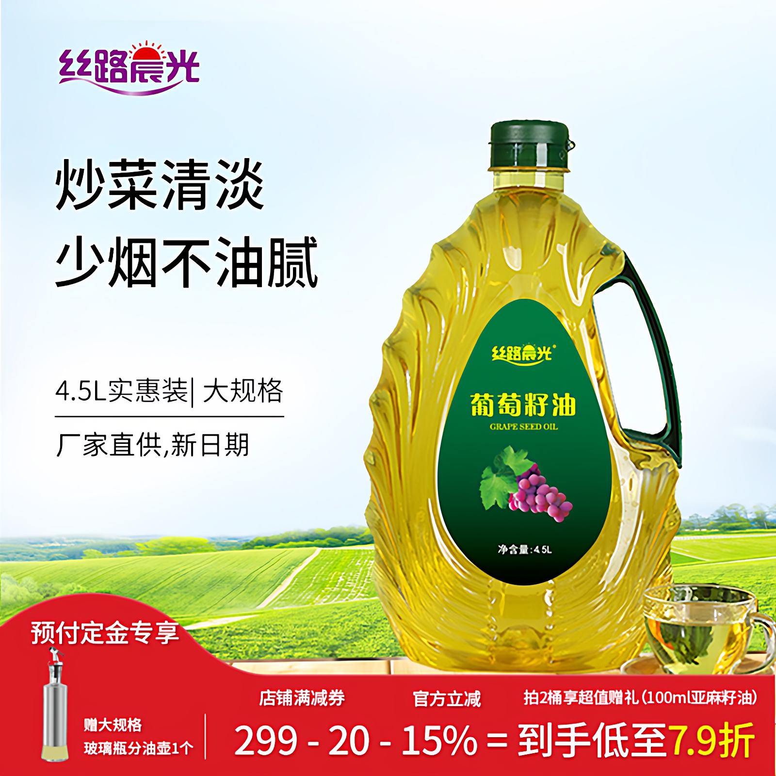 丝路晨光葡萄籽油食用4.5L大规格官方旗舰店正品冷榨炒菜食用油