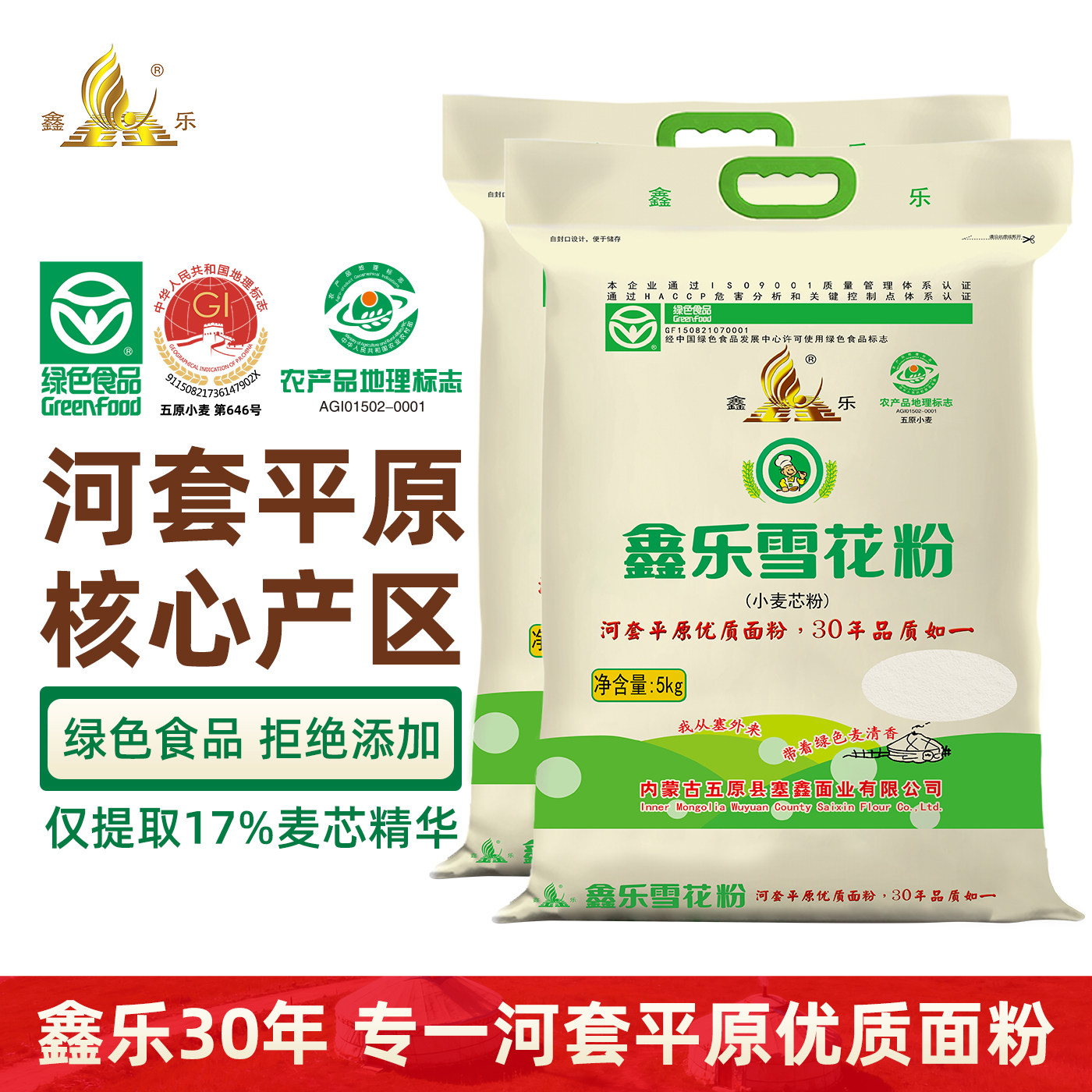 鑫乐内蒙古河套平原雪花粉20斤正宗红小麦中筋麦芯粉A级绿色食品