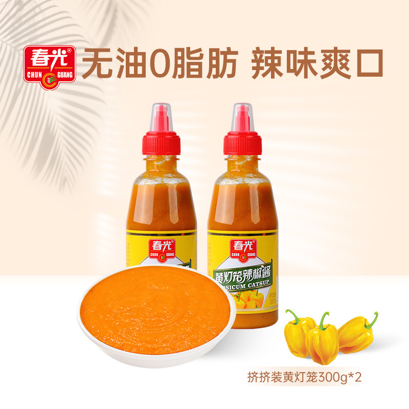 春光食品 海南特产 调味传统制作工艺黄灯笼辣椒酱300g*2瓶挤挤装