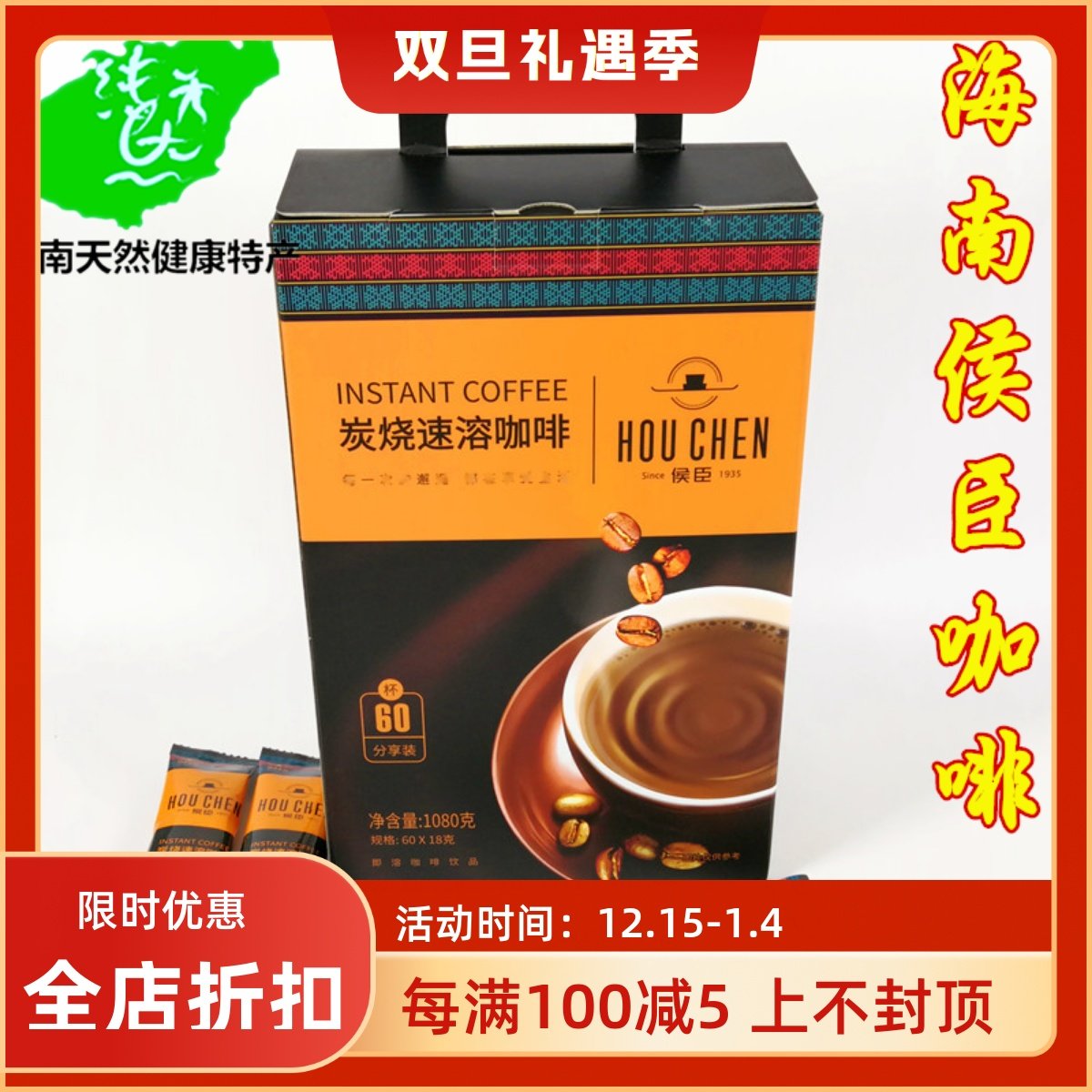 福山侯臣咖啡1080g炭烧/椰奶/摩卡60杯海南特产速溶咖啡条装冲饮