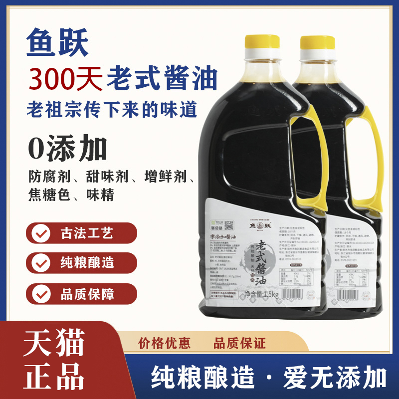 鱼跃酱油旗舰店丽水老式老缸酱油非遗0添加剂零添加纯粮古法酿造