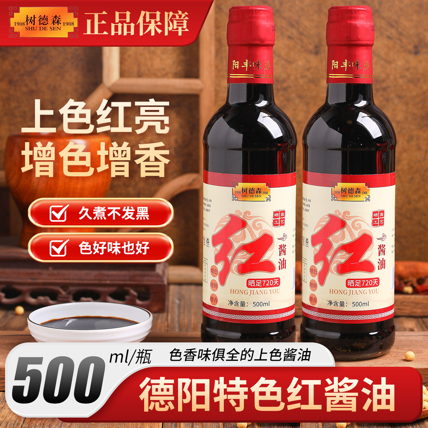 四川红酱油德阳酱油500ml炒菜红烧老式酿造手工酱油家用传统特产