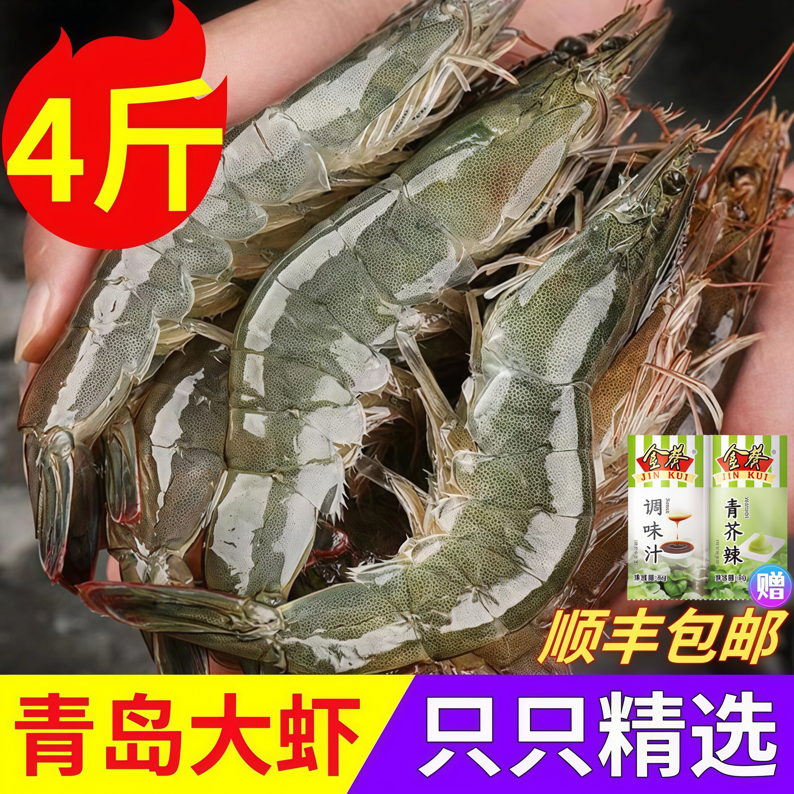 大虾鲜活冷冻超大海虾王牌明虾特大青虾白对虾基围虾青岛海鲜水产