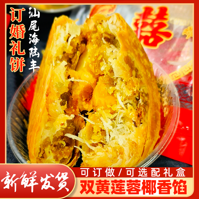 汕尾海丰订婚礼饼喜饼嫁女饼双黄莲蓉椰香大月饼千层皮饼订婚礼盒