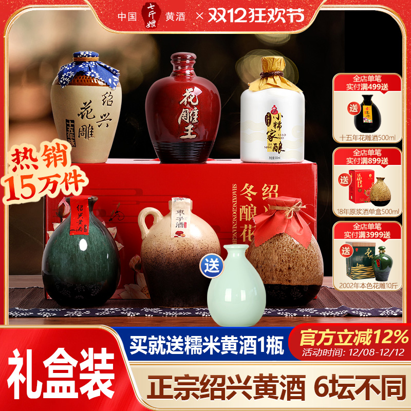 全球 -> 浙江 -> 绍兴 -> 绍兴黄酒女儿红七斤嫂六瓶不同味道花雕酒坛装糯米老酒整箱礼盒装