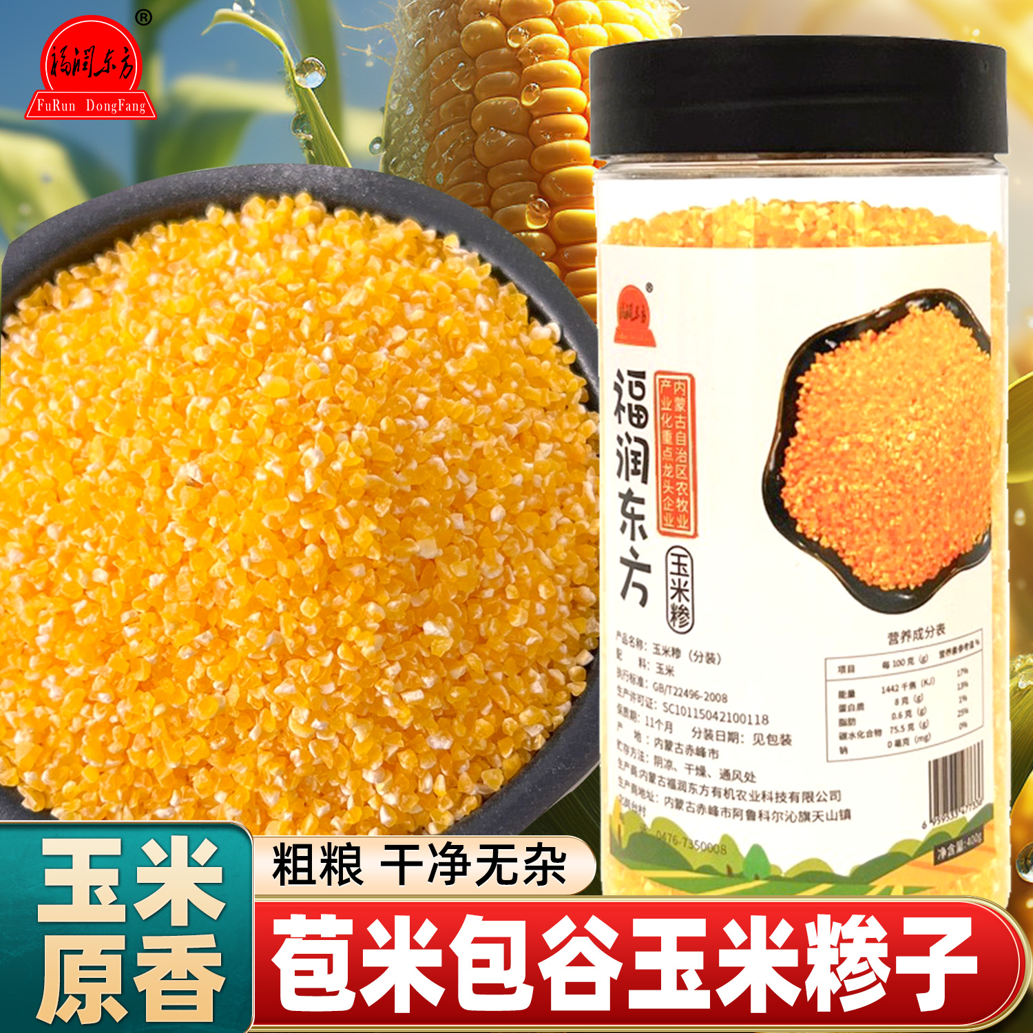 -> 福润东方玉米糁子东北苞米碴小米杂粮粥包谷粒粗粮玉米渣400g罐装