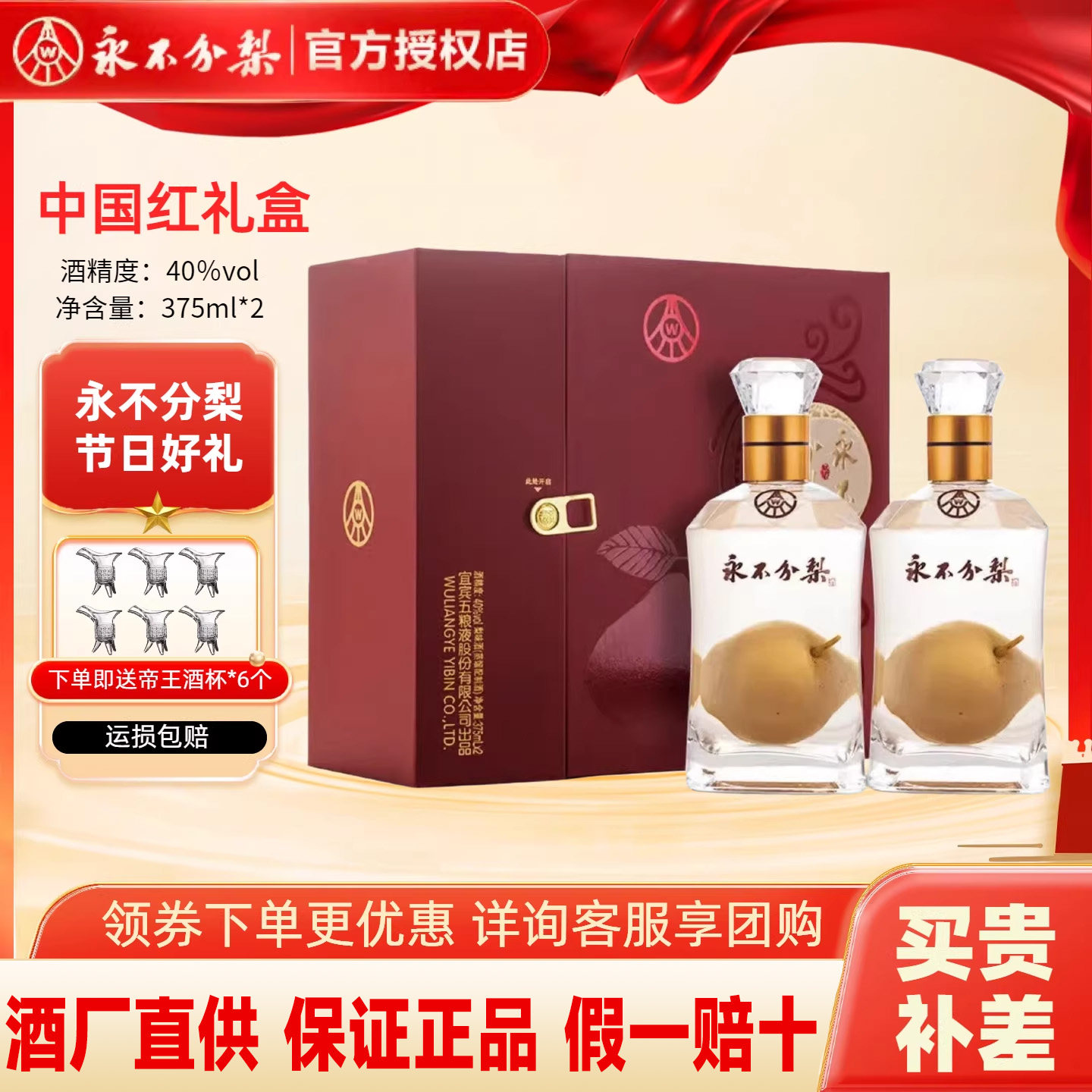 【官方正品】永不分梨酒永不分离40度375ml*2瓶礼盒装 送礼收藏酒