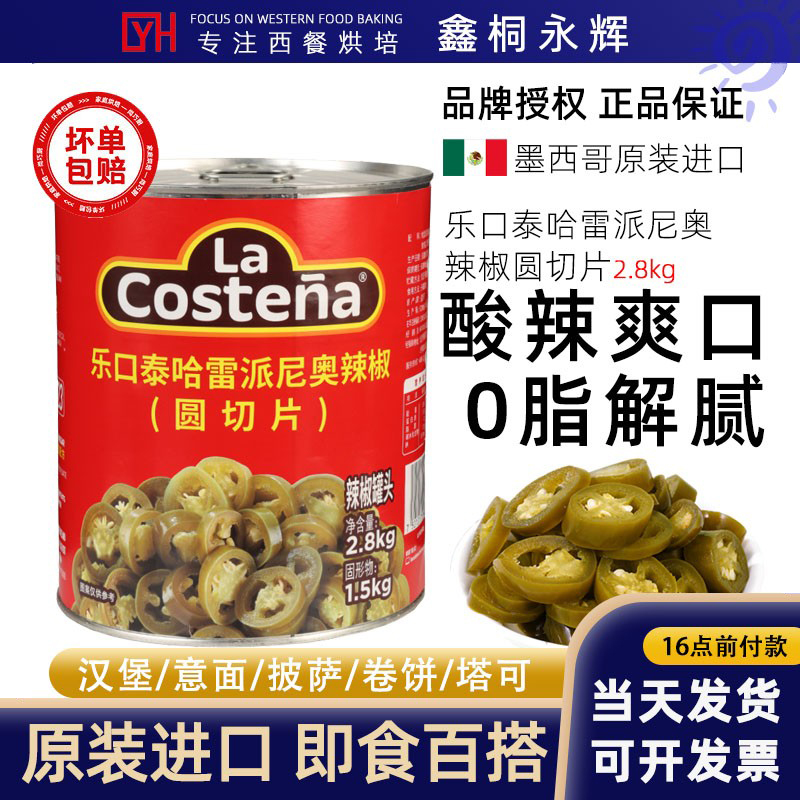 乐口泰哈雷派尼奥墨西哥风味辣椒切片墨西哥辣椒圈商用罐头2.8kg