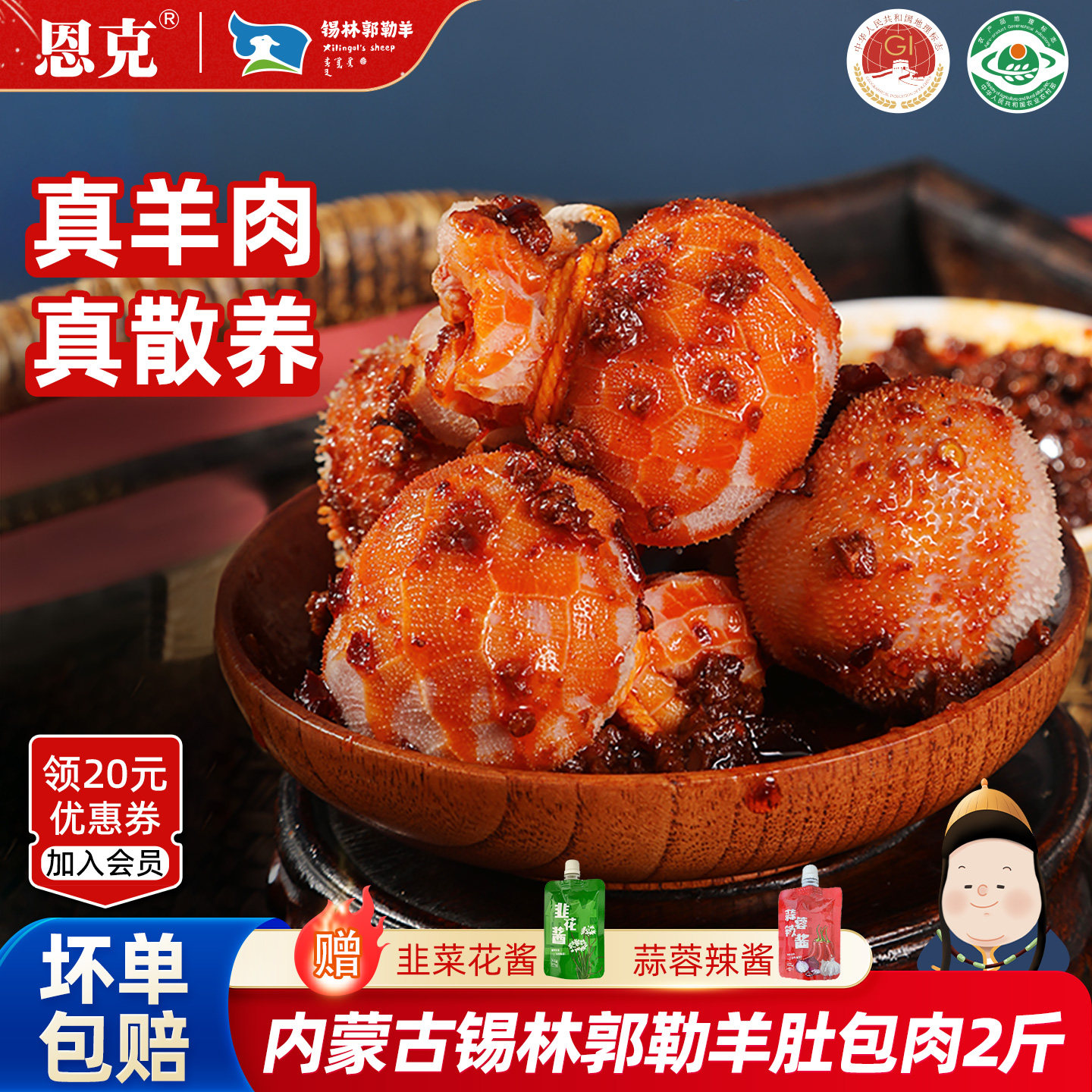 恩克肚包肉 羊肉肠锡林郭勒羊肉生鲜火锅 内蒙古特产肚包肉旗舰店