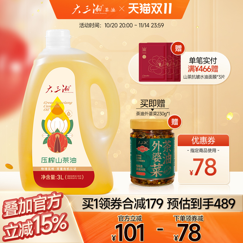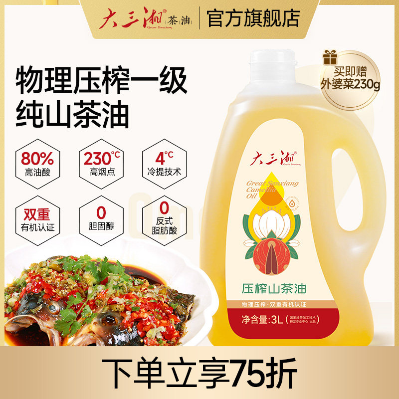 湖南茶油大三湘浓香有机山茶油压榨纯正山茶籽油食用油纯山茶油1L