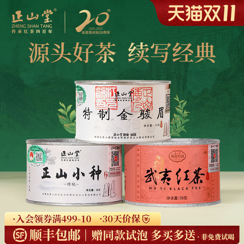 元正茶票小种金丝蕊茉莉花滇红武夷红茶组合5款特级茶叶试饮集25g