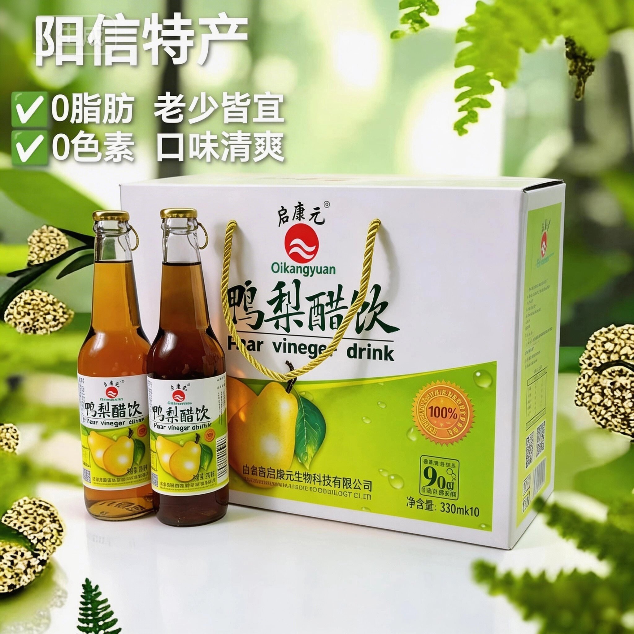 阳信特产启康元鸭梨醋饮料浓缩果汁330ml整箱破损赔付节日礼盒