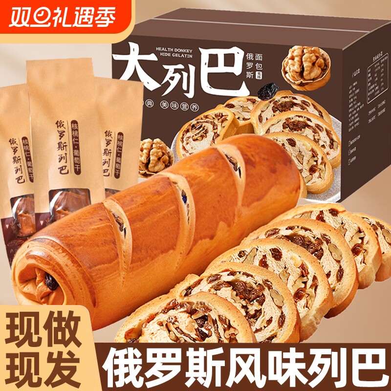 俄罗斯大列巴坚果核桃仁整根面包吐司营养早餐代餐新疆风味零食品