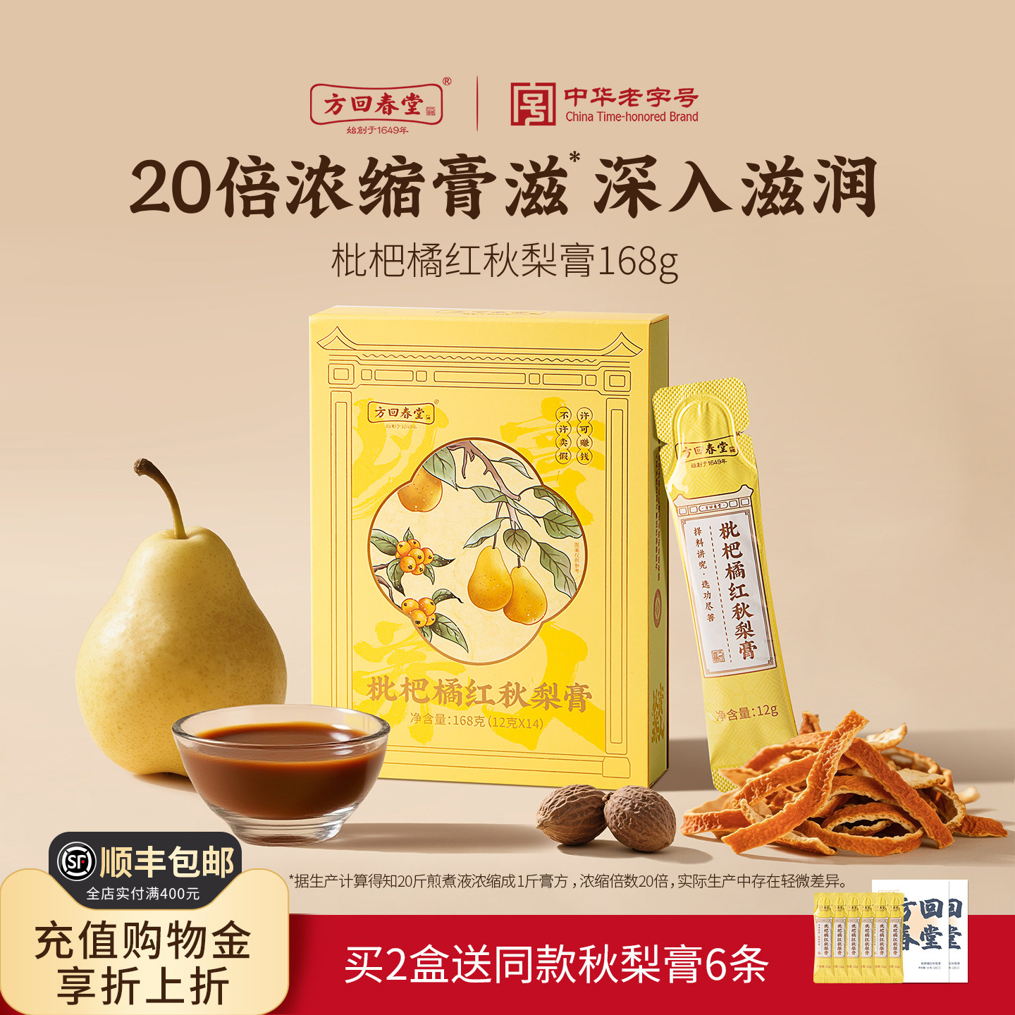 方回春堂枇杷秋梨膏儿童独立化包装橘红秋雪梨膏送老师礼盒旗舰店