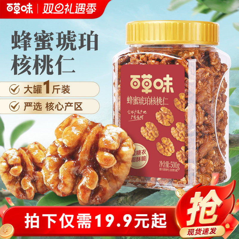 -> 百草味蜂蜜琥珀核桃仁500g罐装即食熟核桃仁坚果干果休闲零食送礼