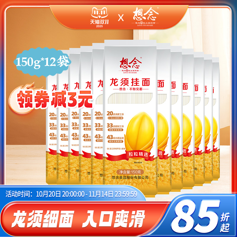 -> 【king哥宠粉节】 想念挂面龙须面150g*12袋细面条早餐汤面拌面