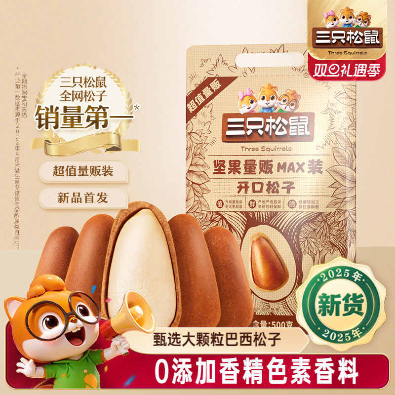 -> 三只松鼠量贩东北松子500g开口松子坚果干果炒货健康休闲零食特产