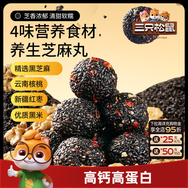 -> 三只松鼠红枣核桃黑芝麻丸150g高蛋白健康滋补送礼零食独立送长辈