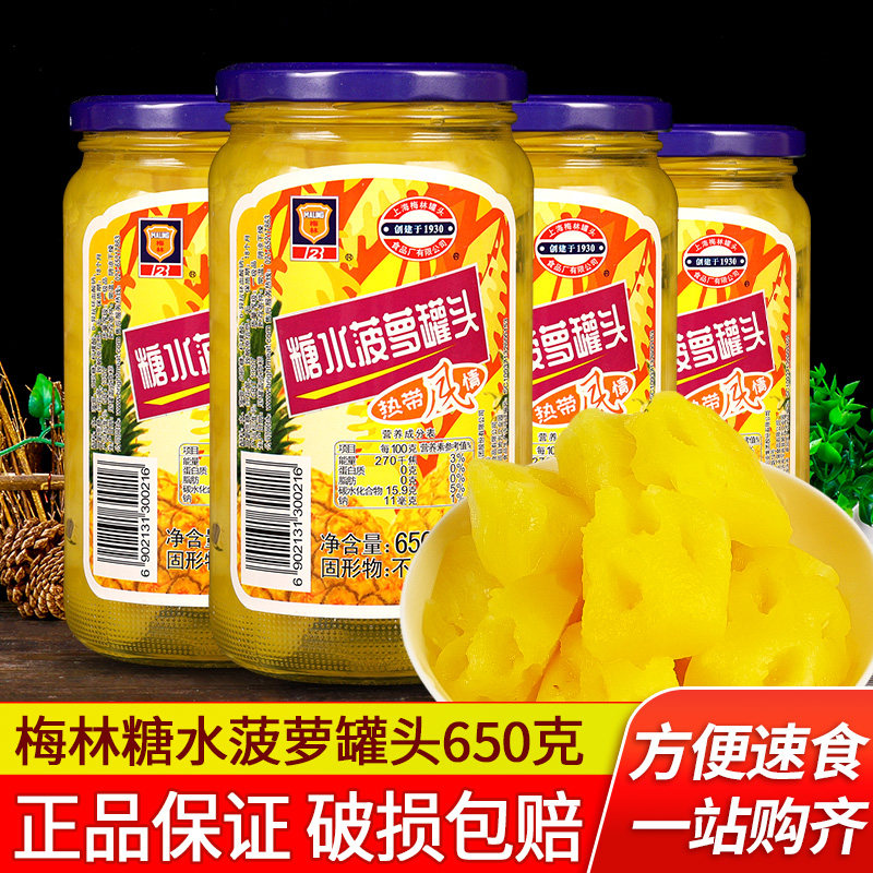 -> 梅林糖水菠萝黄桃罐头650g*4玻璃瓶湛江新鲜凤梨水果披萨烘焙原料