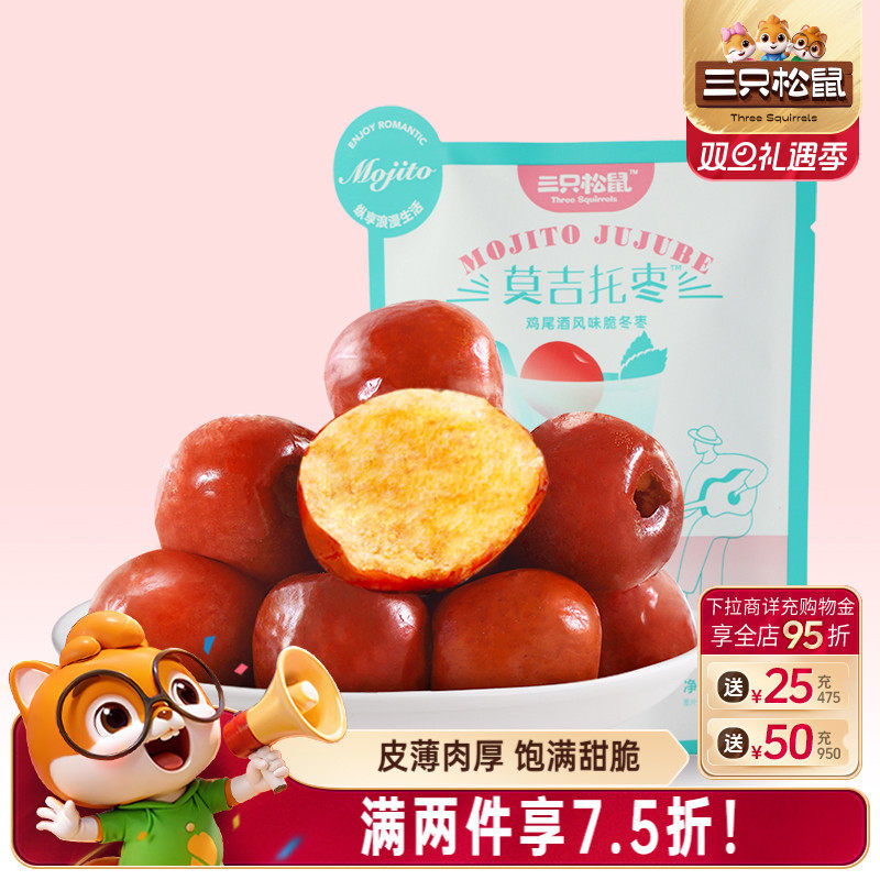 -> 【三只松鼠_白桃枣40gx3】网红休闲脆枣红枣蜜枣酥脆零食大枣