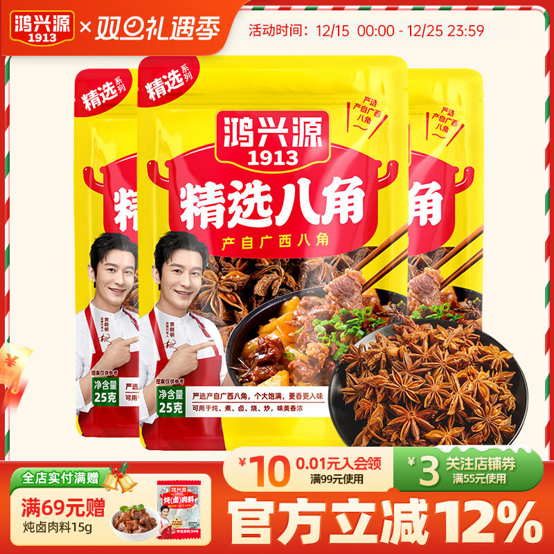 鸿兴源八角大料无硫熏广西大料八角香辛调料炖肉卤料25g*3袋