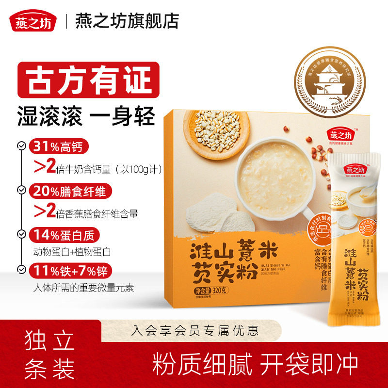 -> 燕之坊淮山薏米芡实粉320g猴菇山药黑豆黑米早餐代餐办公室冲饮粉