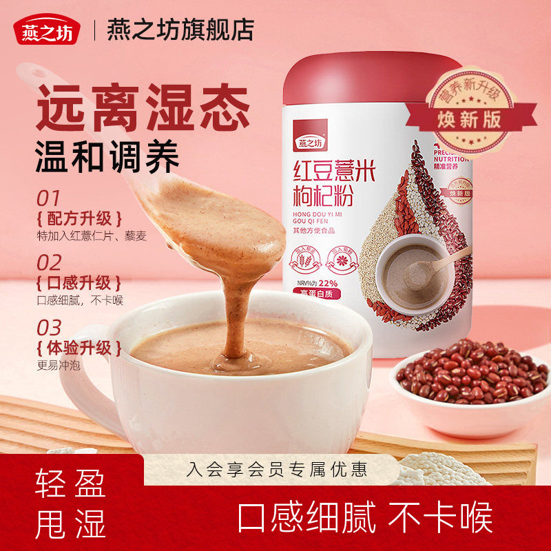 燕之坊红豆薏米枸杞粉500g五谷薏米仁高蛋白低脂代餐冲饮早餐