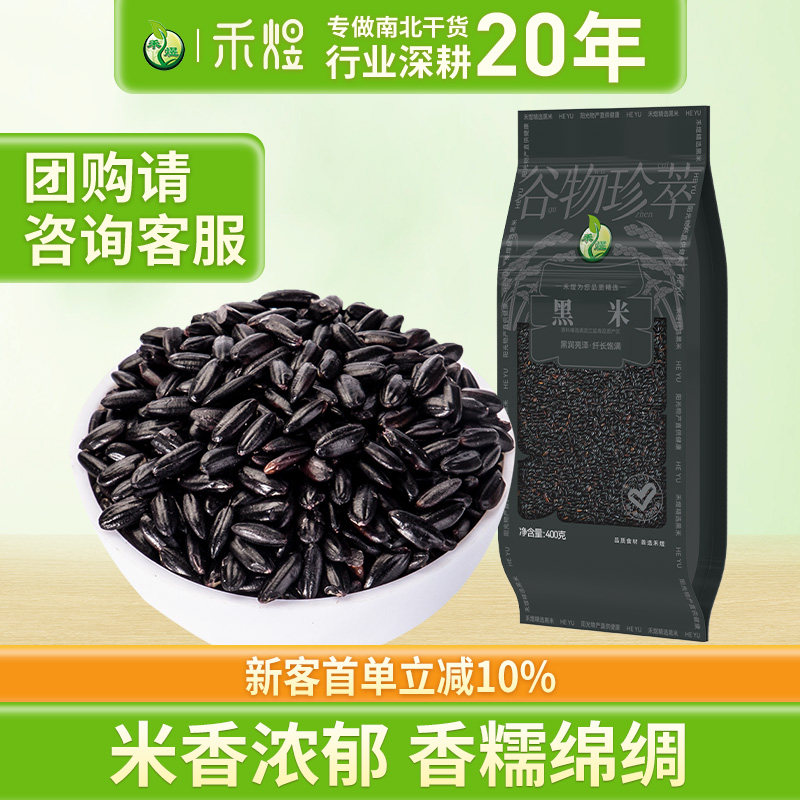 -> 禾煜黑米400g杂粮东北五谷杂粮粥黑香米粗粮米黑米粥饭黑大米香糯
