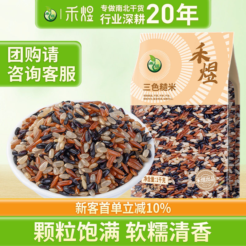 -> 禾煜三色糙米饭粗粮五谷杂粮黑米红米糙米1kg