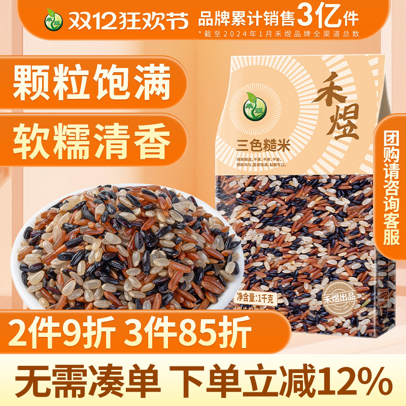 -> 禾煜三色糙米饭粗粮五谷杂粮主食黑米红米糙米1kg
