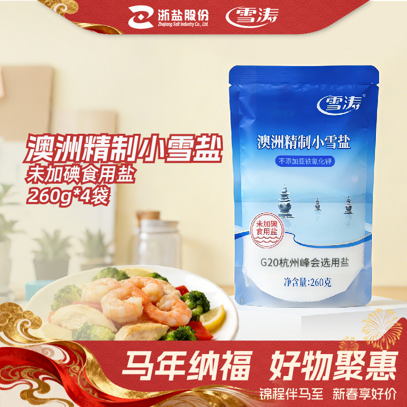 雪涛澳洲精制小雪盐无碘食用海盐未加碘不含抗结剂甲状腺260g*4袋