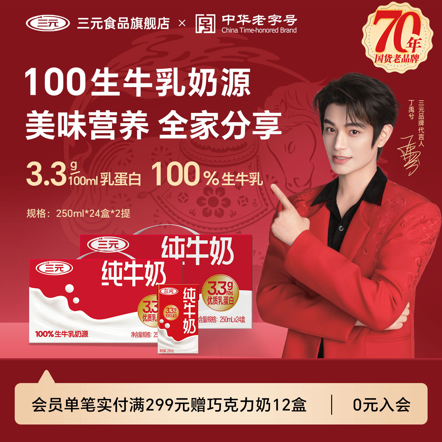 三元牛奶250ml*24盒*2箱3.3g蛋白 正品 纯牛奶 春节礼品