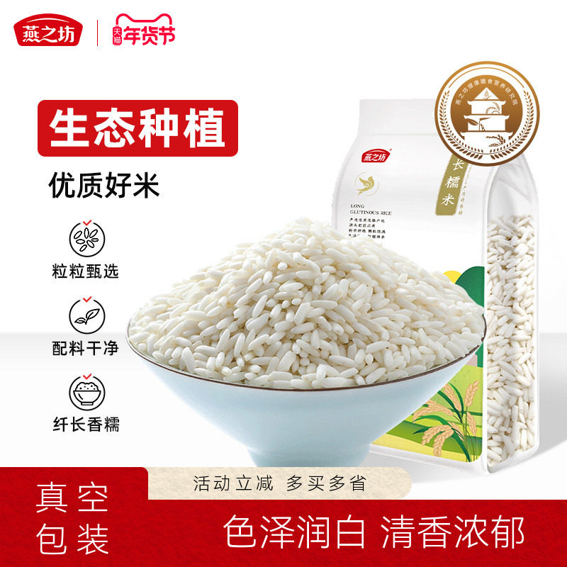 -> 燕之坊长糯米1kg白糯米五谷杂粮粗粮糯米包粽子原料营养江米