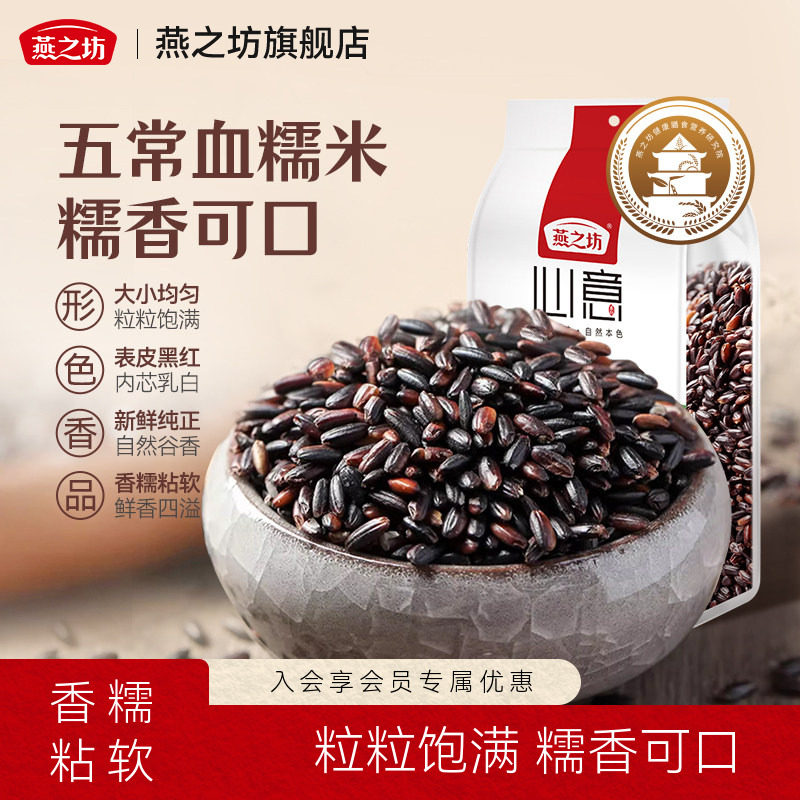 -> 燕之坊血糯米1kg五谷杂粮东北粗粮黑糯米紫糯米煮粥紫米2斤