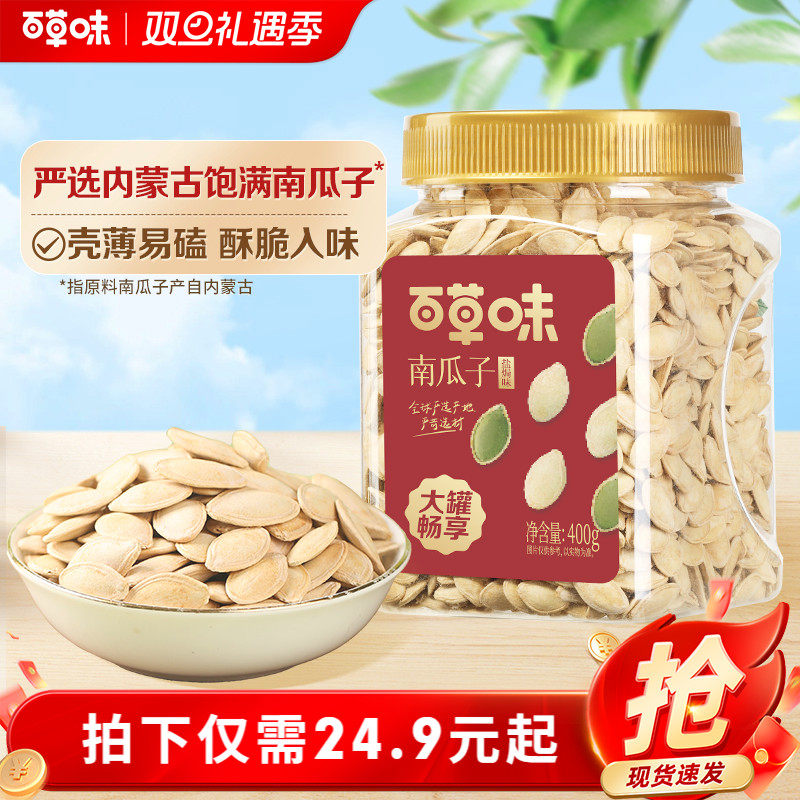 -> 百草味南瓜子盐焗味400g罐装新货南瓜籽瓜子炒货坚果干果休闲零食