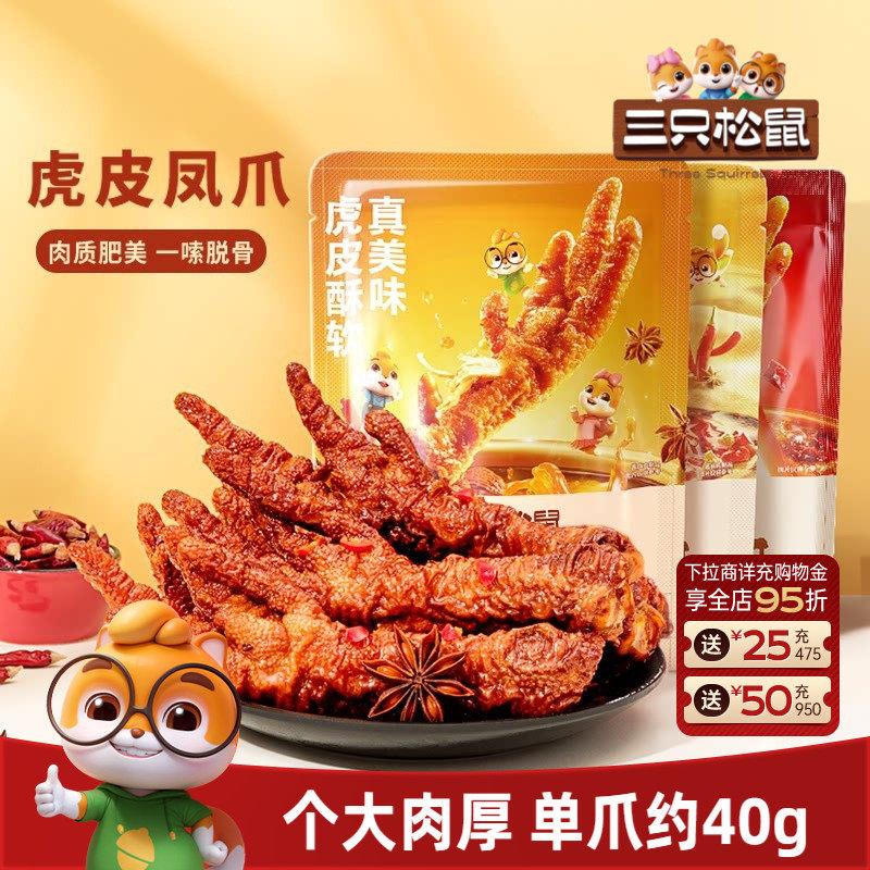 三只松鼠_虎皮凤爪卤味鸡爪即食解馋休闲零食香辣火锅熟食小吃