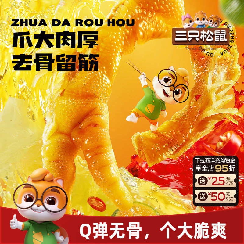 三只松鼠_去骨凤爪无骨鸡爪子香辣柠檬酸辣泡椒脱骨即食零食小吃