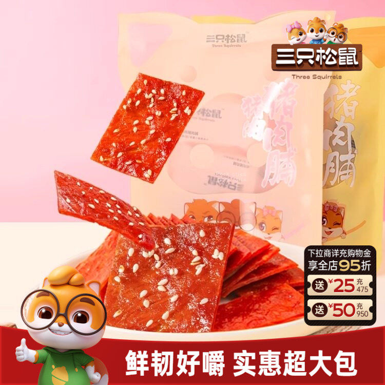 三只松鼠_猪肉脯大袋装原味芝麻味高蛋白熟食特产解馋零食小吃
