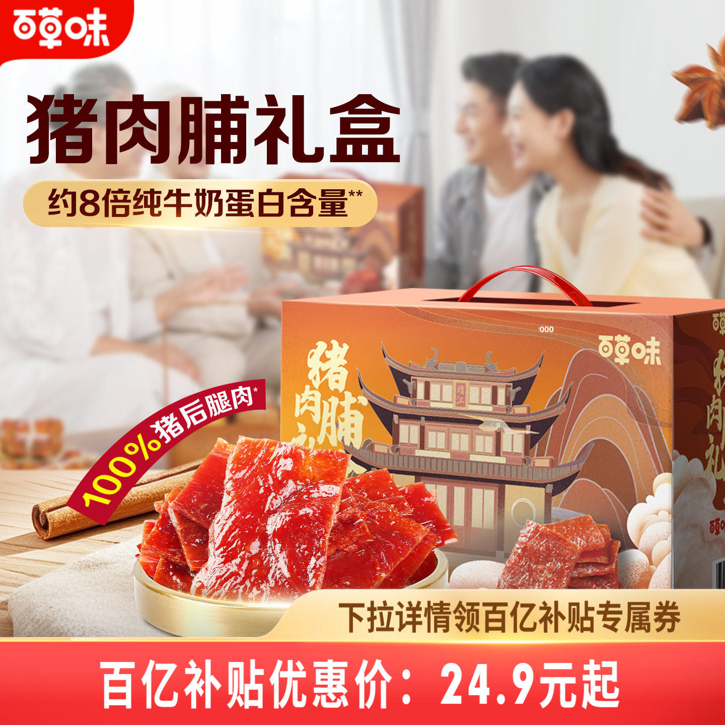 -> 百草味精制猪肉脯零食155g靖江风味猪肉干肉片原味零食官方正品