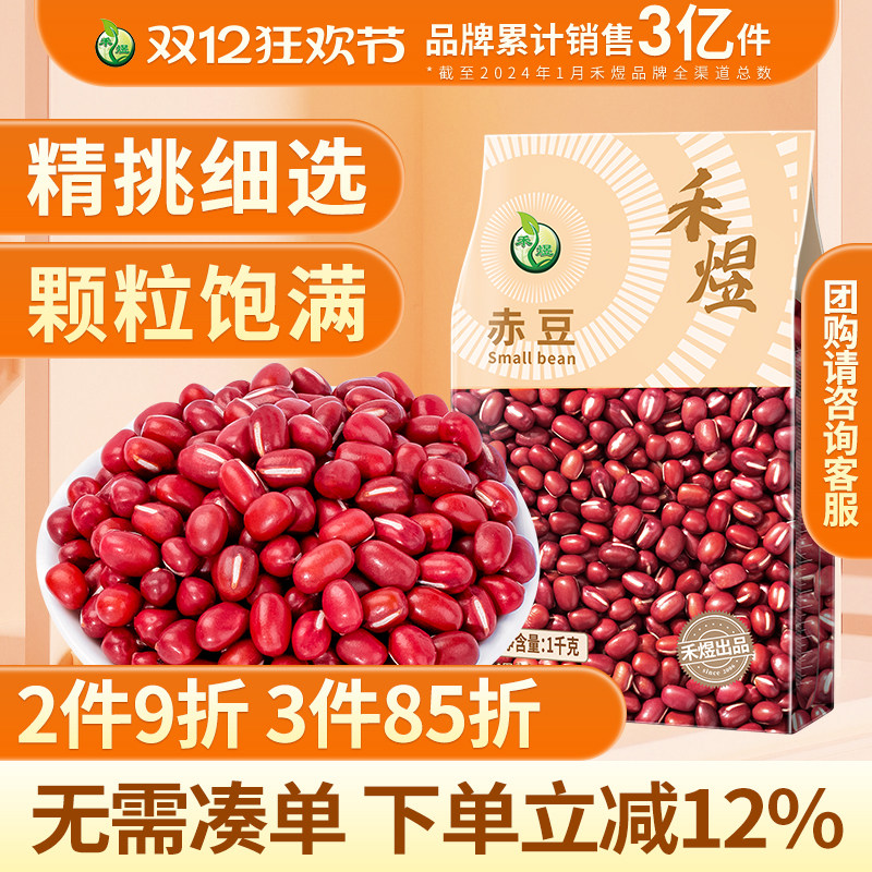 -> 禾煜杂粮红豆赤豆1kg 红小豆奶茶红豆红豆薏米杂粮熬粥豆沙馅粗粮