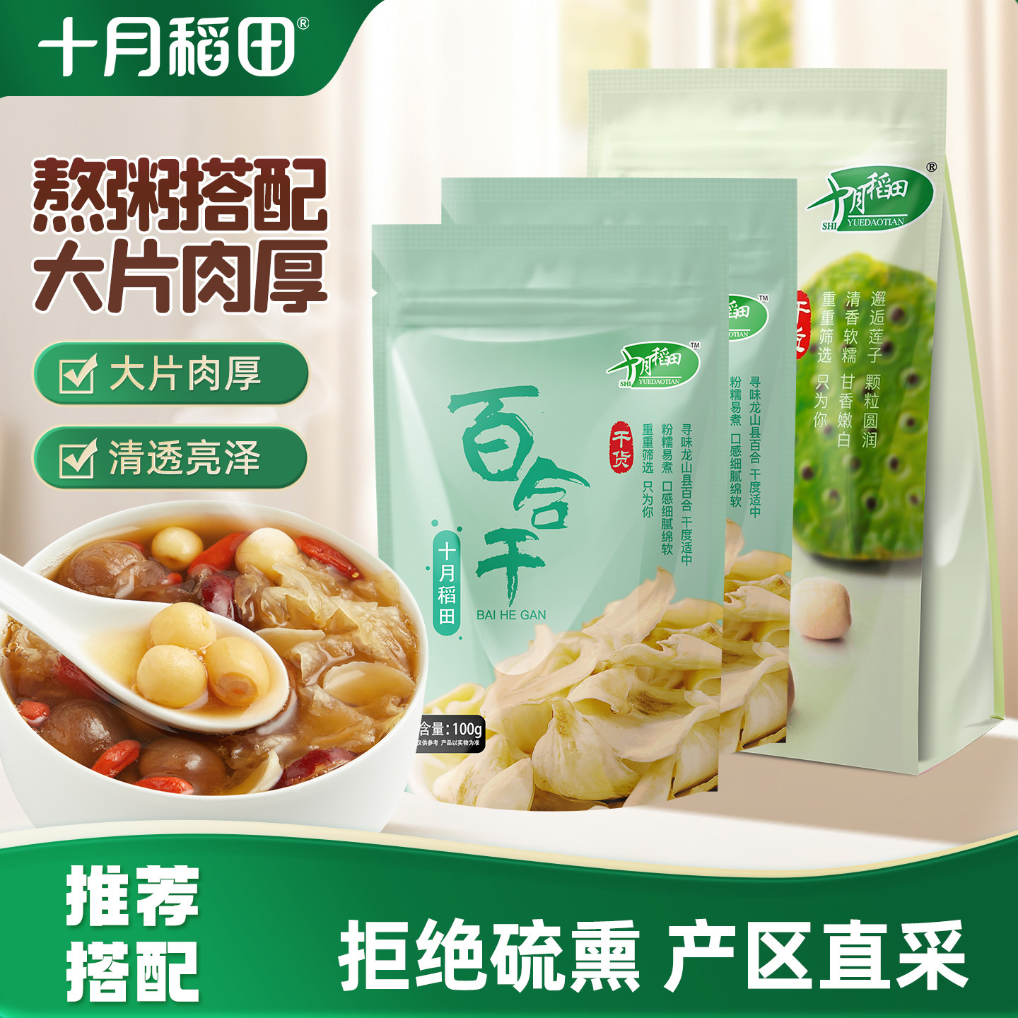十月稻田莲子百合组合莲子250g*1百合100g*2搭配银耳枸杞