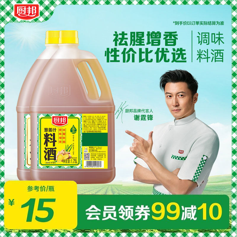 -> 厨邦葱姜汁料酒1.75L*2瓶装海鲜去腥提鲜黄酒调味