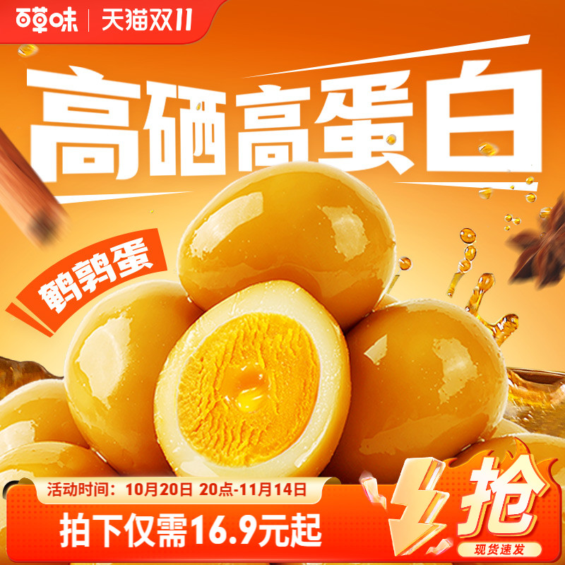 -> 百草味富硒鹌鹑蛋盐焗味64粒熟食休闲零食礼包老汤卤蛋量大实惠
