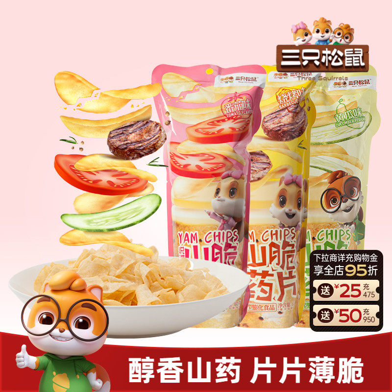-> 三只松鼠薯片45g山药脆片薄片网红休闲食品解馋薯条办公室