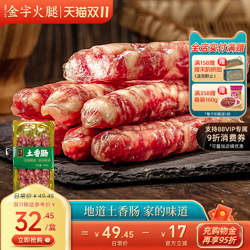 -> 金字土香肠260g原味微辣咸香味腊肠灌肠手工腊味农家特产肉肠美食