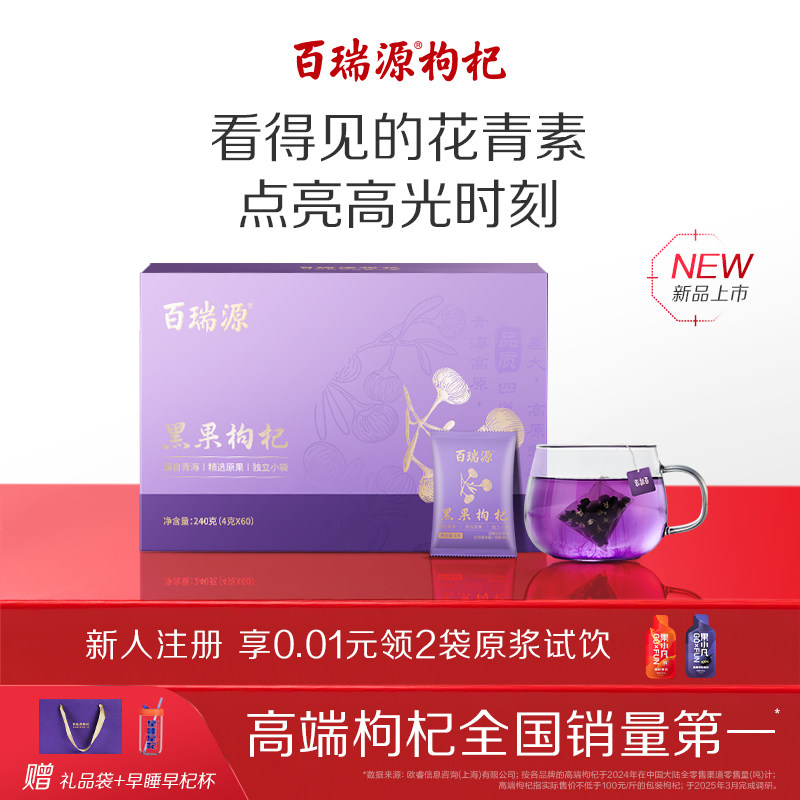 百瑞源枸杞|青海黑果枸杞子240g 黑枸杞礼盒宁夏官方旗舰店正品