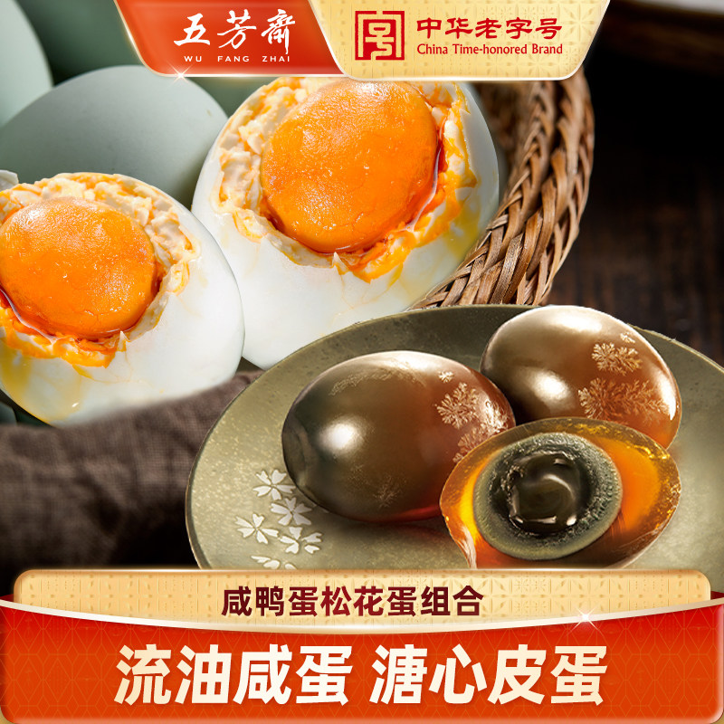 -> 五芳斋皮蛋松花蛋流油咸鸭蛋组合新鲜咸蛋皮蛋真空即食散装年夜饭